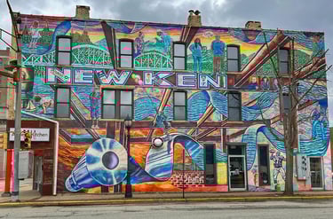 The town of New Kensington, 18 miles northeast of Pittsburgh, is seeing a resurgence after many years of deterioration and blight. Fueled by building renovations, a brewery and other new businesses, outside investment, and community mural projects, the outlook for New Ken is bright. I joined with CARP (the Community Arts and Restoration Project) and community leaders to complete this 35 x 64 ft. gateway mural at the entrance to downtown New Kensington.