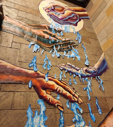 Baptismal Hands 20 x 7 ft. acrylic on polytab 2022